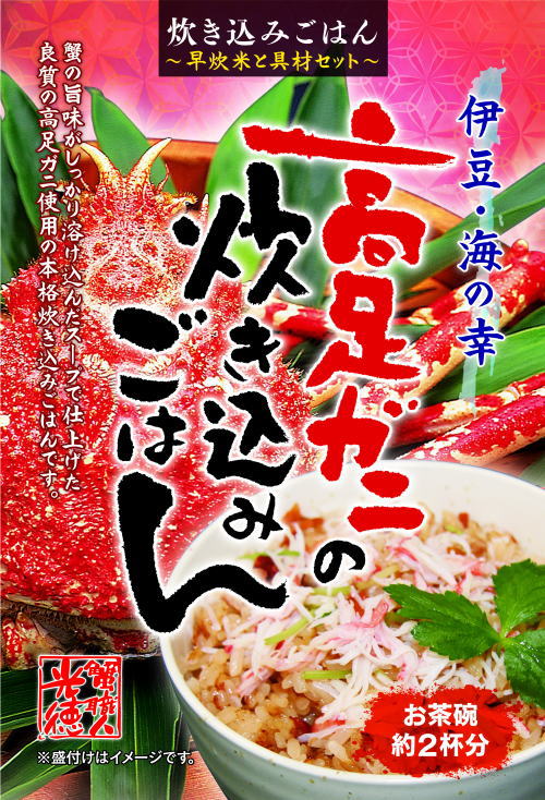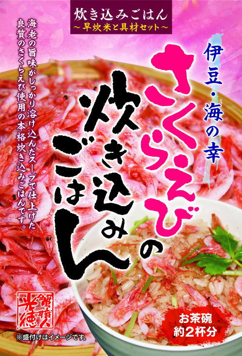 昨日4月6日より、新商品2品の販売を開始致しました。まず1品目は、戸田の特産である高足ガニを使った「高足がにの炊き込みご飯」、2品目は駿河湾の桜えびを使った「桜えびの炊き込みご飯」!どちらも中に入っているご飯と具を袋から出して炊飯器にそのまま入れるだけ、簡単手間いらずで美味しく頂けるようになっております。当社ネット通販でもご購入頂けます。